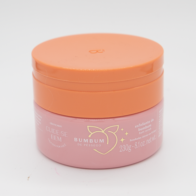 Descubra o segredo brasileiro para uma pele irresistivelmente suave e radiante com o nosso Bumbum de Pêssego Esfoliante. Inspirado na exuberância tropical e na paixão pelo cuidado corporal, este esfoliante luxuoso é a sua passagem para uma experiência de spa em casa.