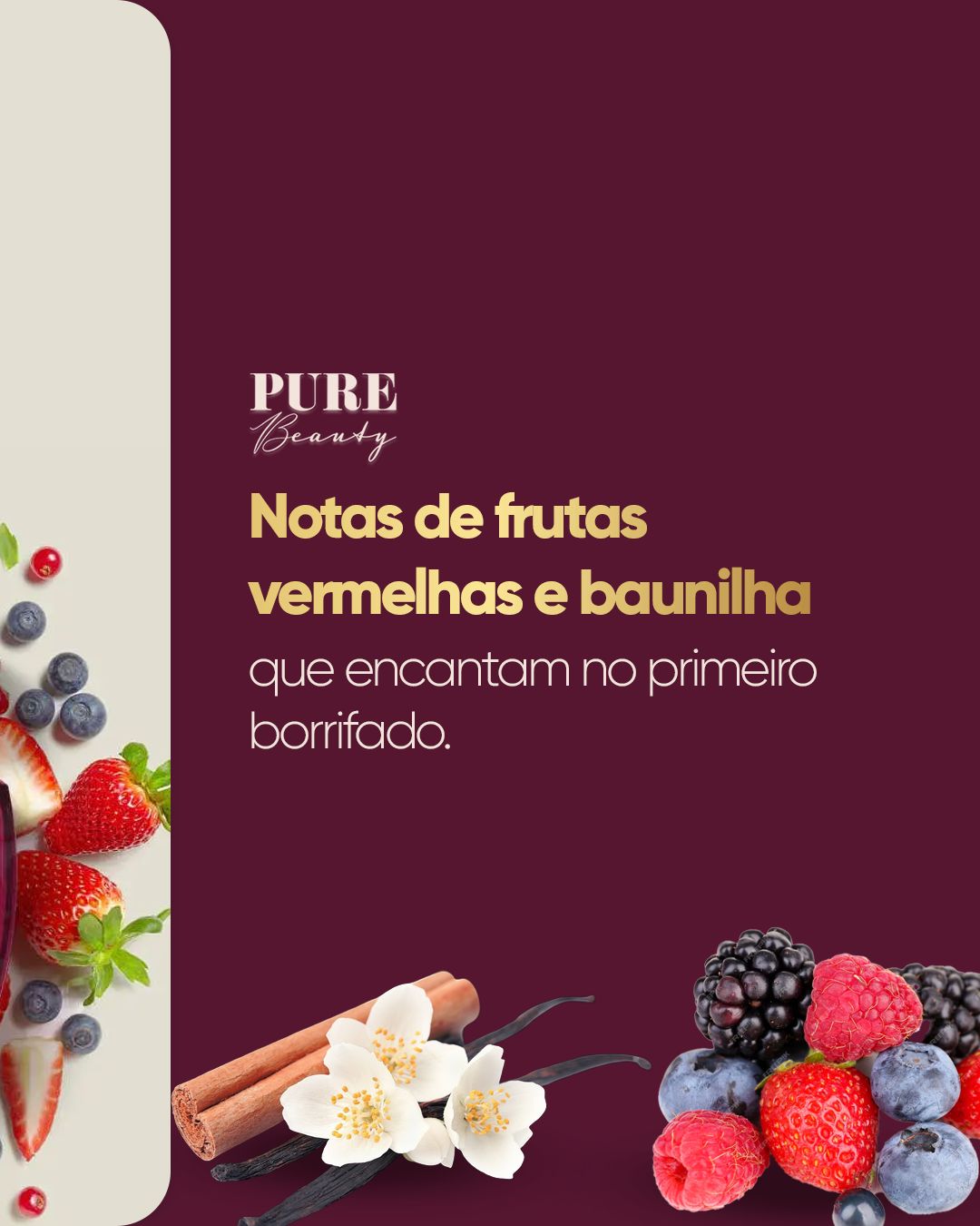 Sofisticado, sensual e irreverente, traz em sua saída as notas vibrantes de Frutas Vermelhas com toques cítricos. O corpo da fragrância, ou seja, a sua evolução, conta com a feminilidade de florais brancos e modernos do Jasmim e Frangipani, mas também a delicadeza da Rosa. E, para trazer a assinatura oriental sensual, potente e viciante da fragrância, o fundo conta com o protagonismo vindo da cremosidade de Baunilha e Sândalo, além de gourmands de Cacau e Café.