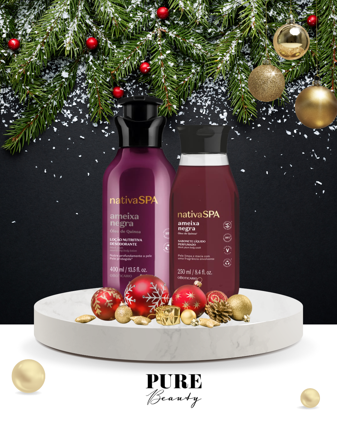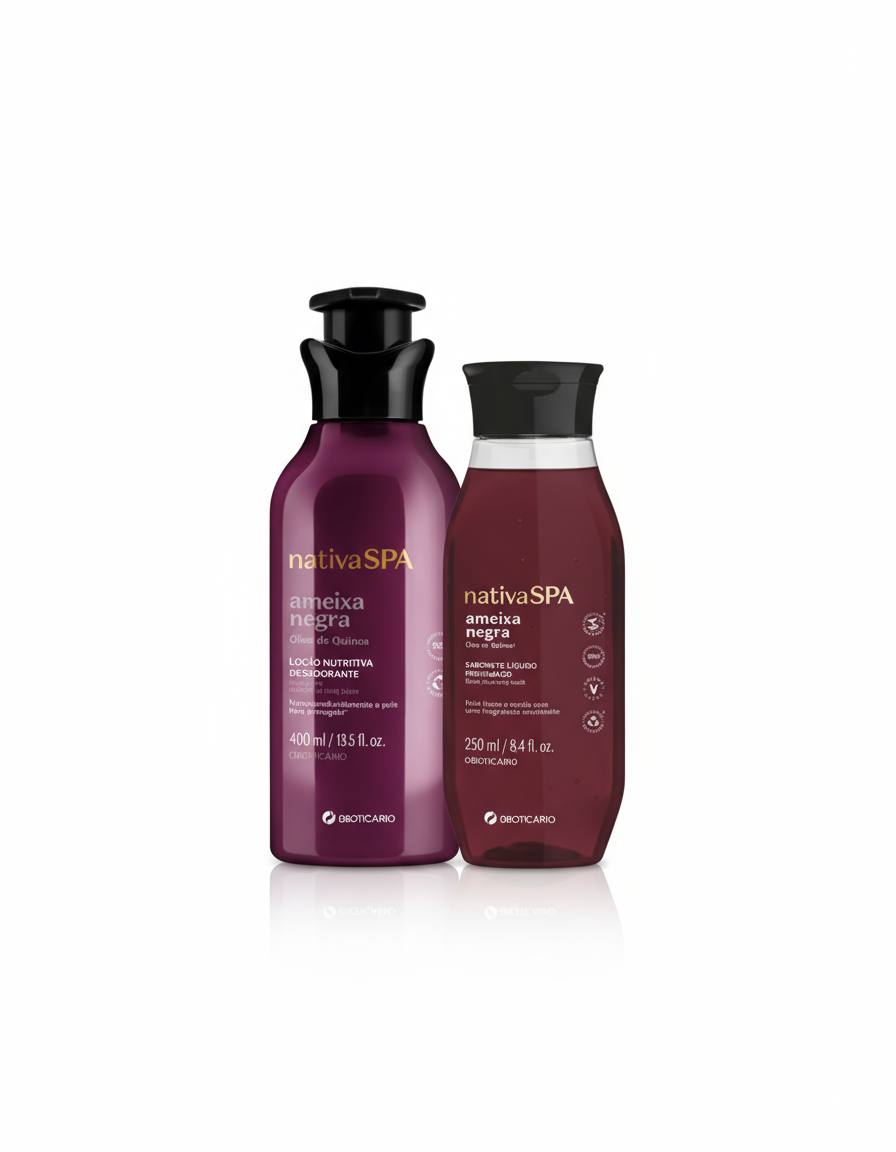 Descubra o segredo da beleza brasileira com o Kit Presente Loção Corporal e Sabonete Líquido Ameixa Negra da Nativa SPA. Uma experiência sensorial luxuosa que transporta você diretamente para o coração do Brasil, agora disponível para o público britânico.