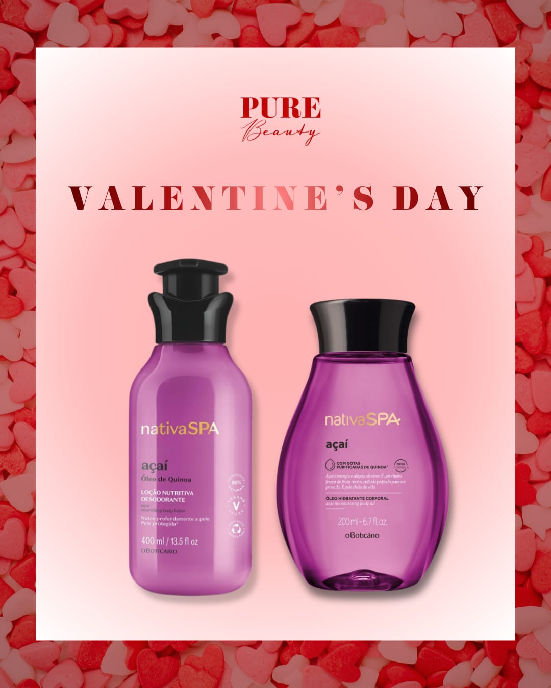 O Kit Açaí transforma o cuidado corporal em uma experiência envolvente. A loção corporal hidrata profundamente e deixa a pele macia, enquanto o óleo corporal realça o brilho natural e intensifica a fragrância frutada e marcante do açaí. O resultado é uma pele perfumada, luminosa e irresistível ao toque.