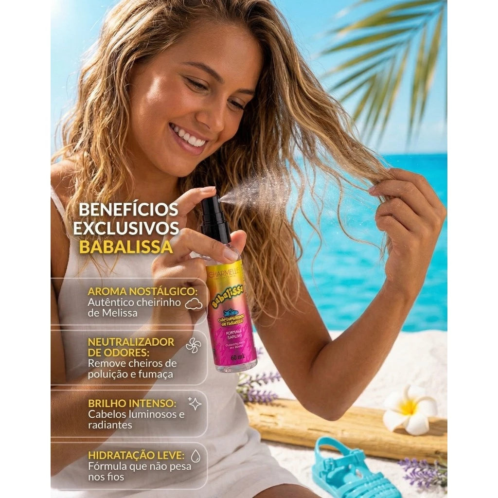 Dê aos seus cabelos um toque de magia e nostalgia! O Perfume Capilar Babalissa da Charmelle foi desenvolvido para quem ama fios perfumados, brilhantes e com aquele aroma inconfundível que marcou gerações.